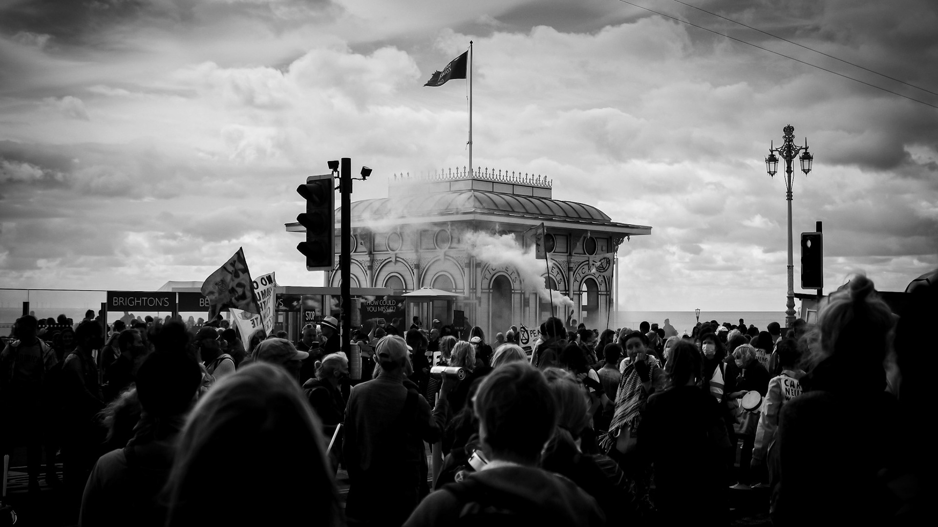 The Black Lives Matter movement and Extinction Rebellion organised the march in Brighton calling for climate and social justice. The person holding this sign was stood in the same position for well over an hour.